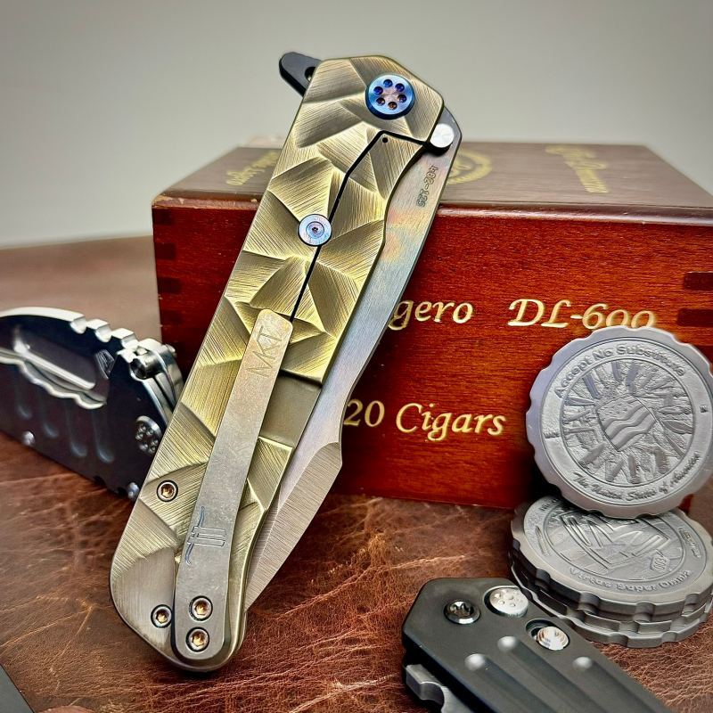 8 Years Later… MKT cut another small run of the knife on request from dealers. The limited 2024 “Re-Release” of the Gigantes knife sported the updated 6-gun pivot hardware, advancements to the “spring” side, and a new clip. Medfordknife.com then immediately sold out of the website Gigantes and set aside a few for special laser projects. A project that would put the Greek Gods on the handle of the Greek Titan inspired knife.