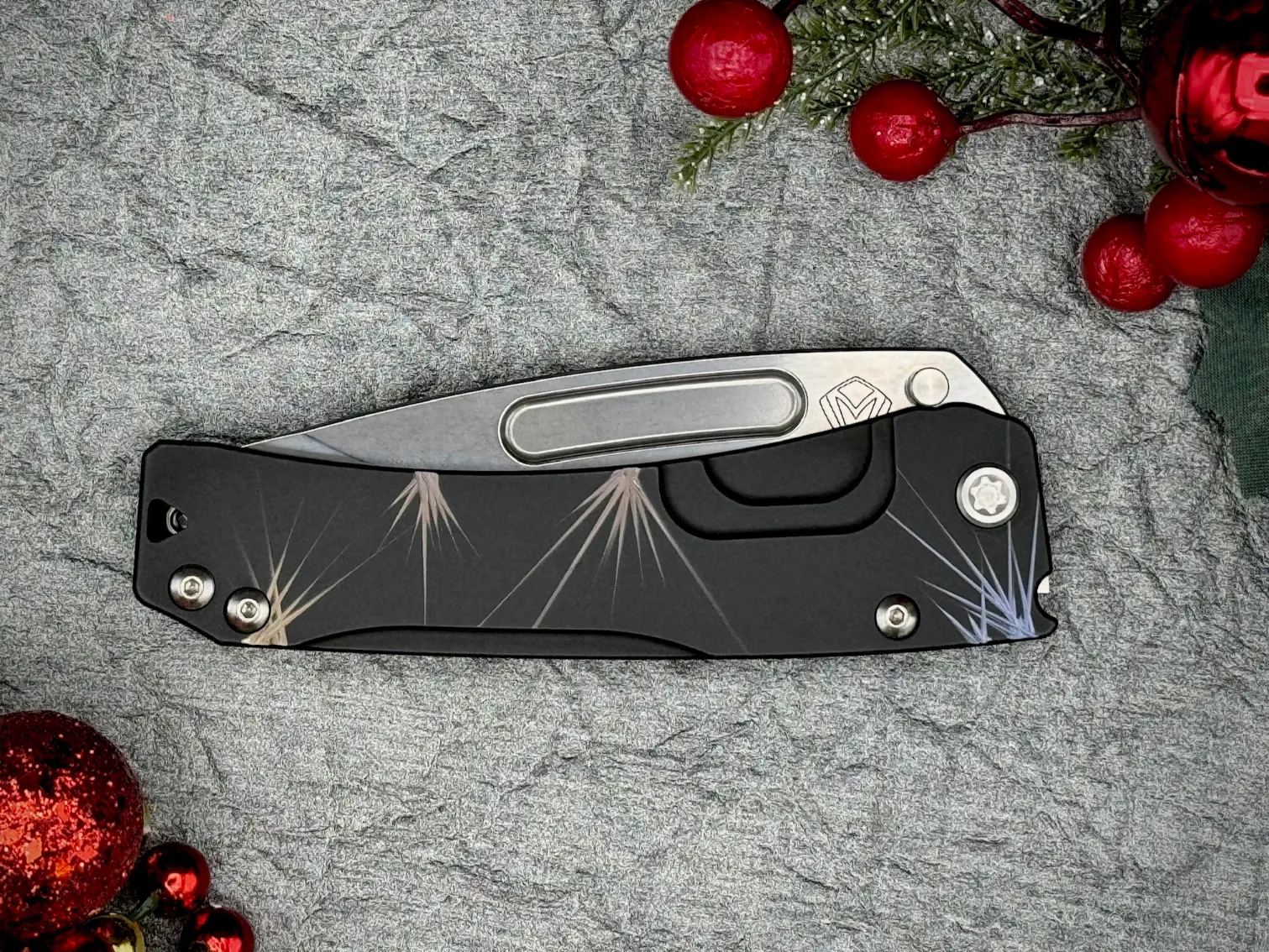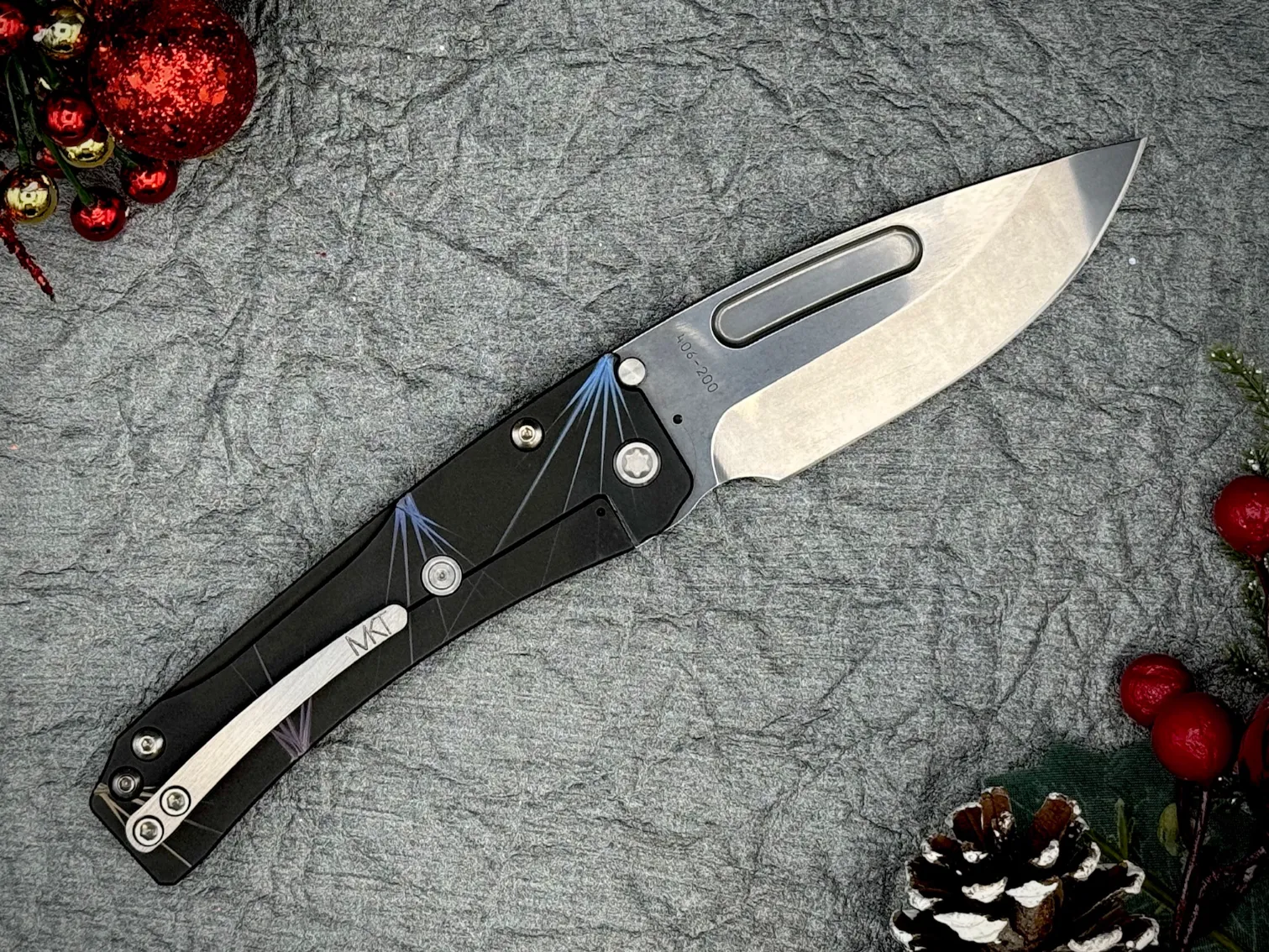 S45VN TUMBLED DROP POINT BLADE BLACK/MULTI COLOR ‘AGAVE’ SCULPTED HANDLES STANDARD HARDWARE & CLIP