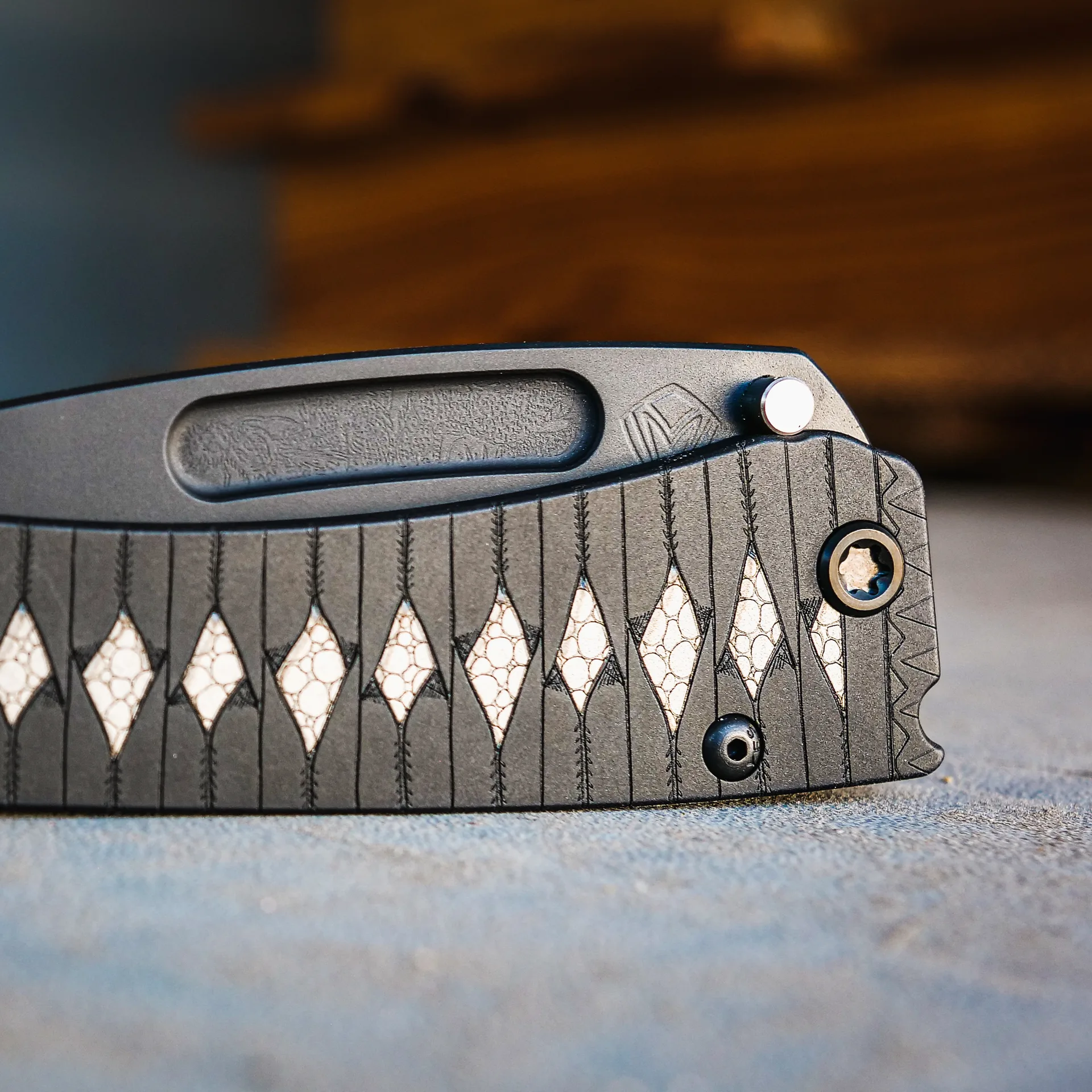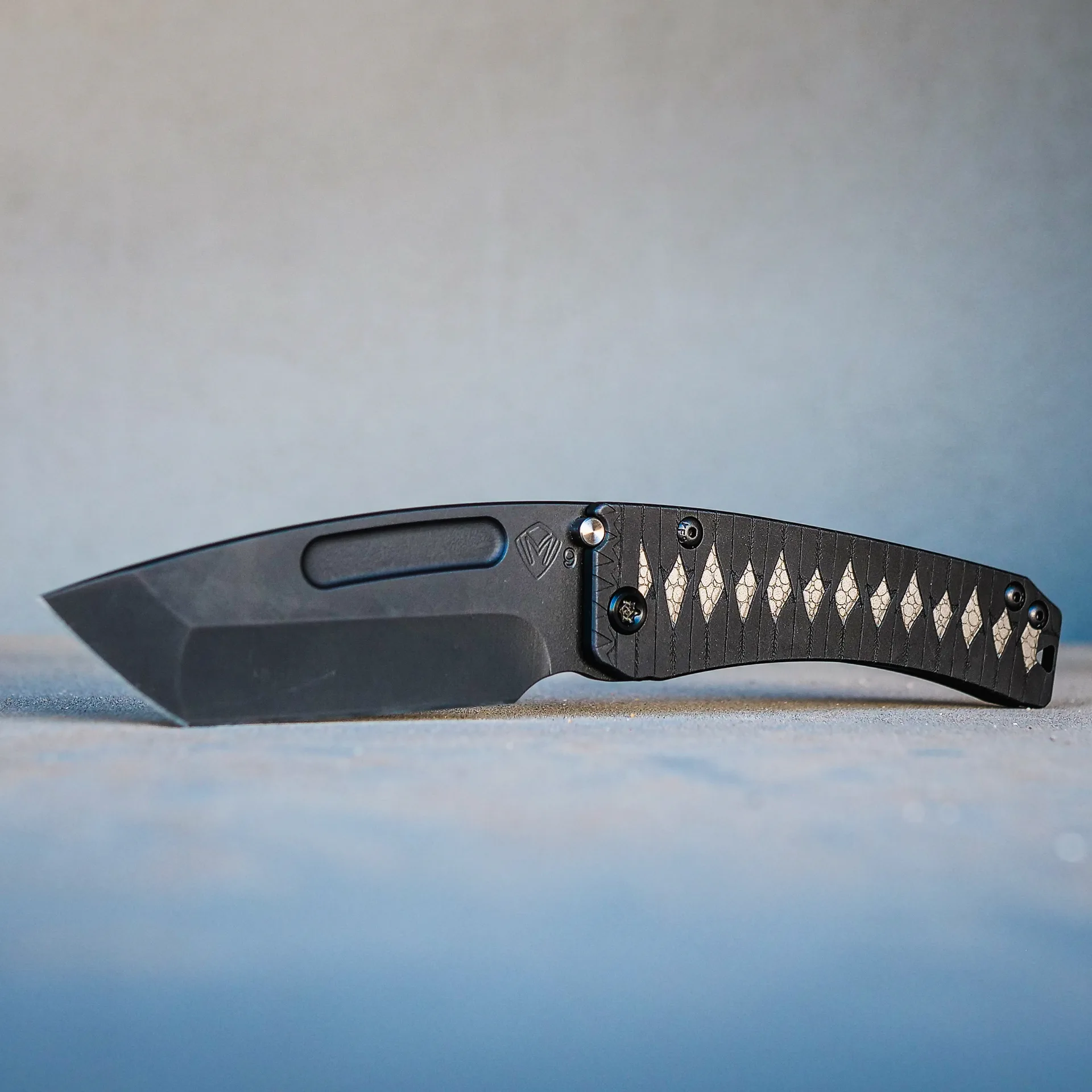 Handles: Black “Tsumami-Maki” Samurai Deep Lasered Handles