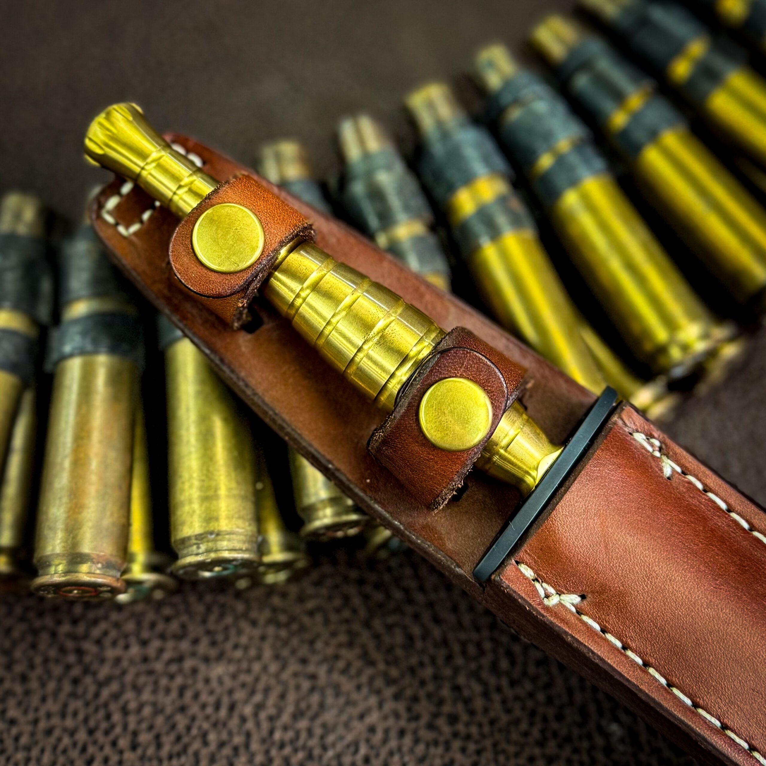 3V Blade Steel PVD Blade Finish Standard Grind Brass Handle Leather Sheath PVD Hardware N/A Clip N/A Breaker