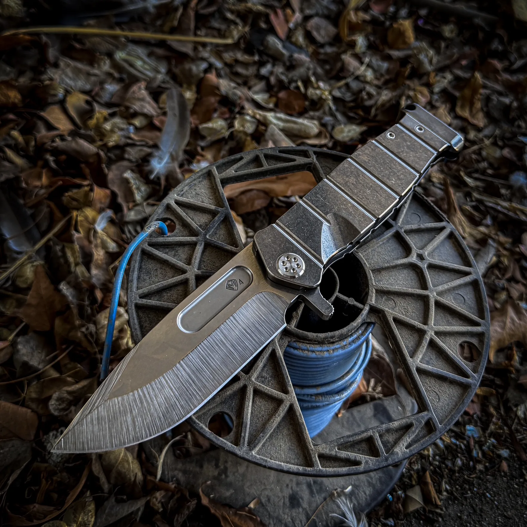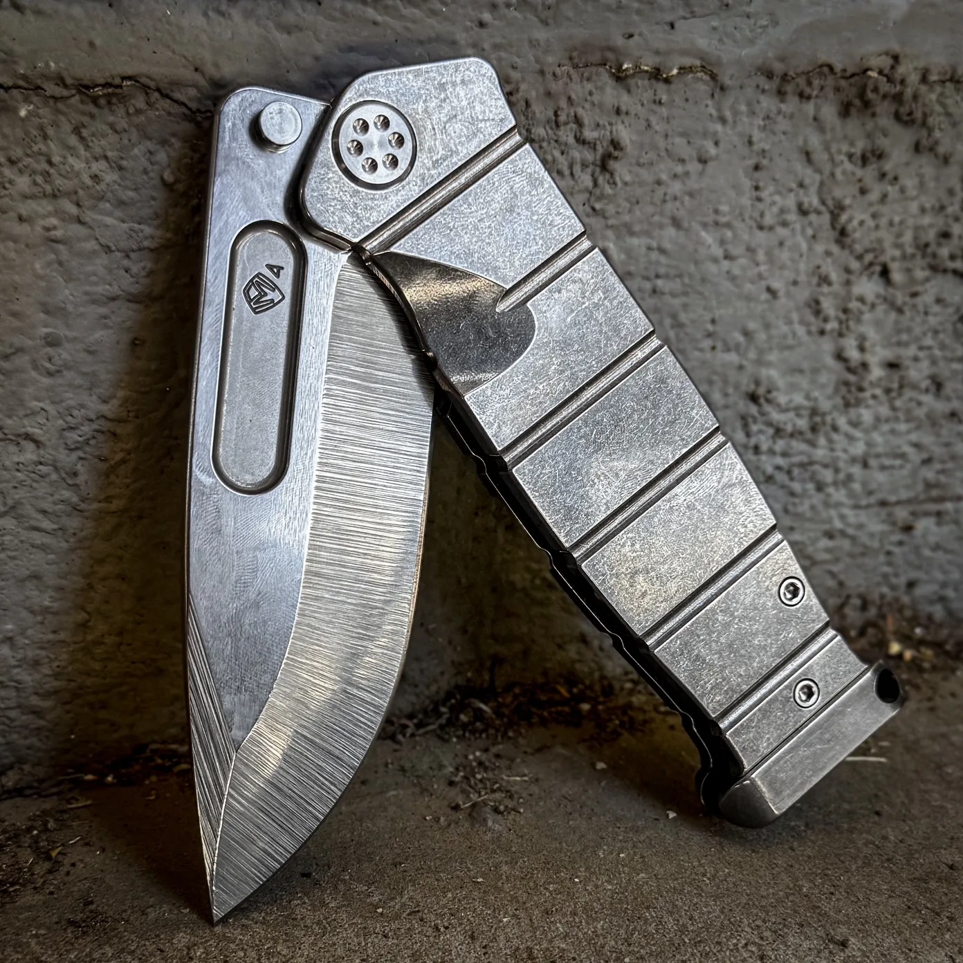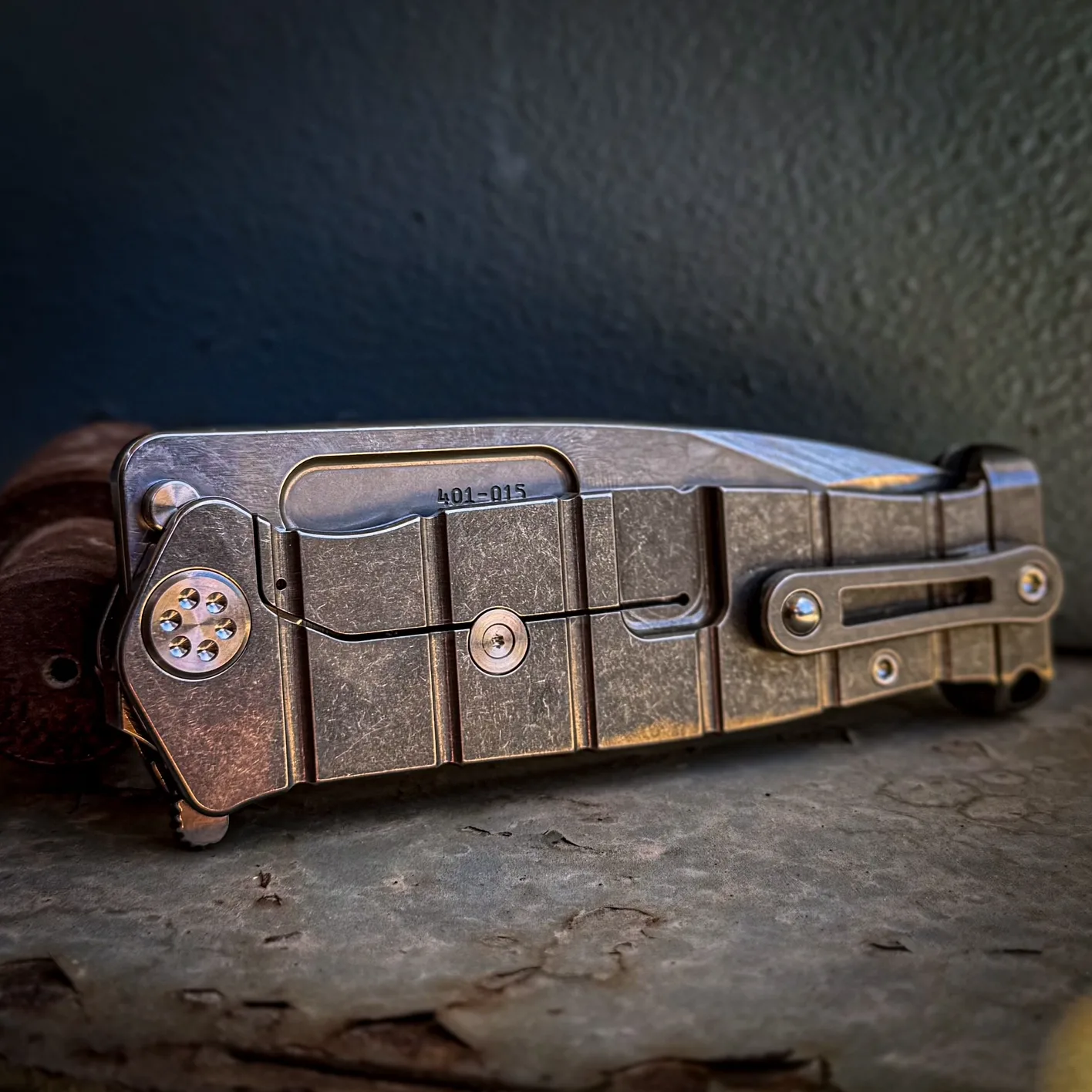 “TERMINATOR FINISH” CPM S35/45VN TUMBLED BLADE ALL TITANIUM HANDLES ALL TITANIUM HARDWARE, CLIP & POMMEL