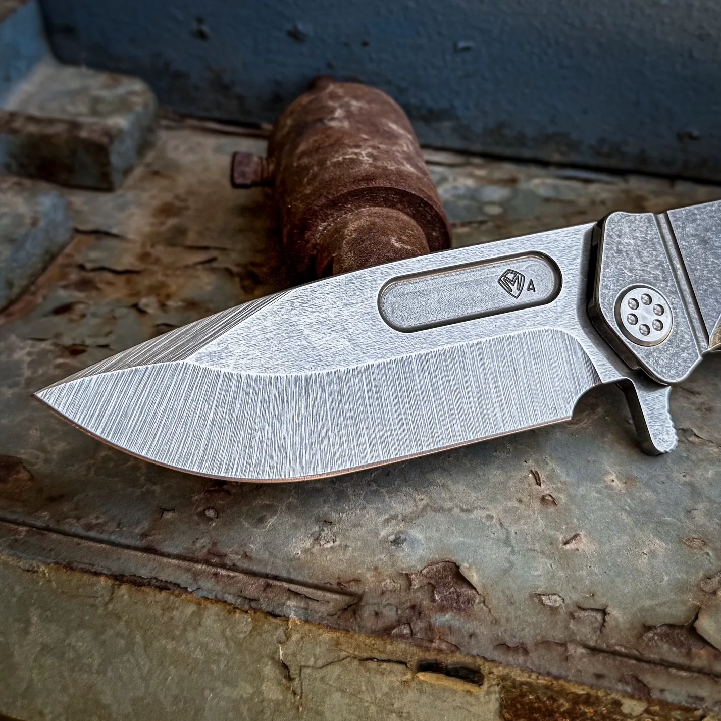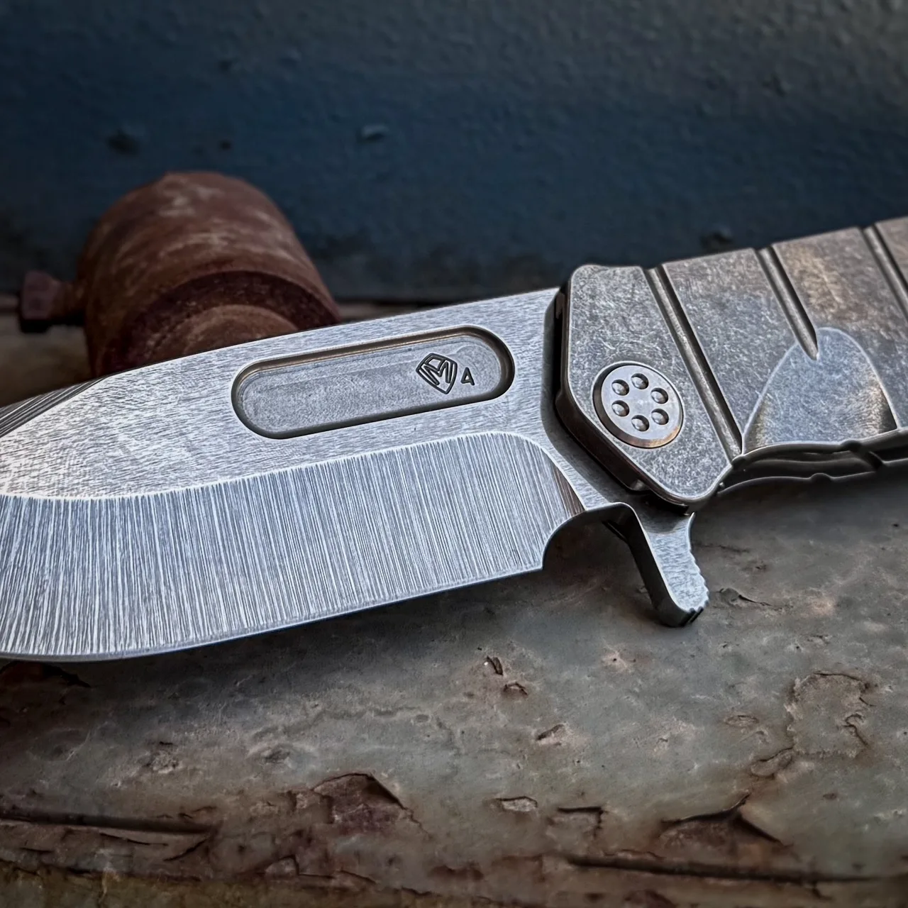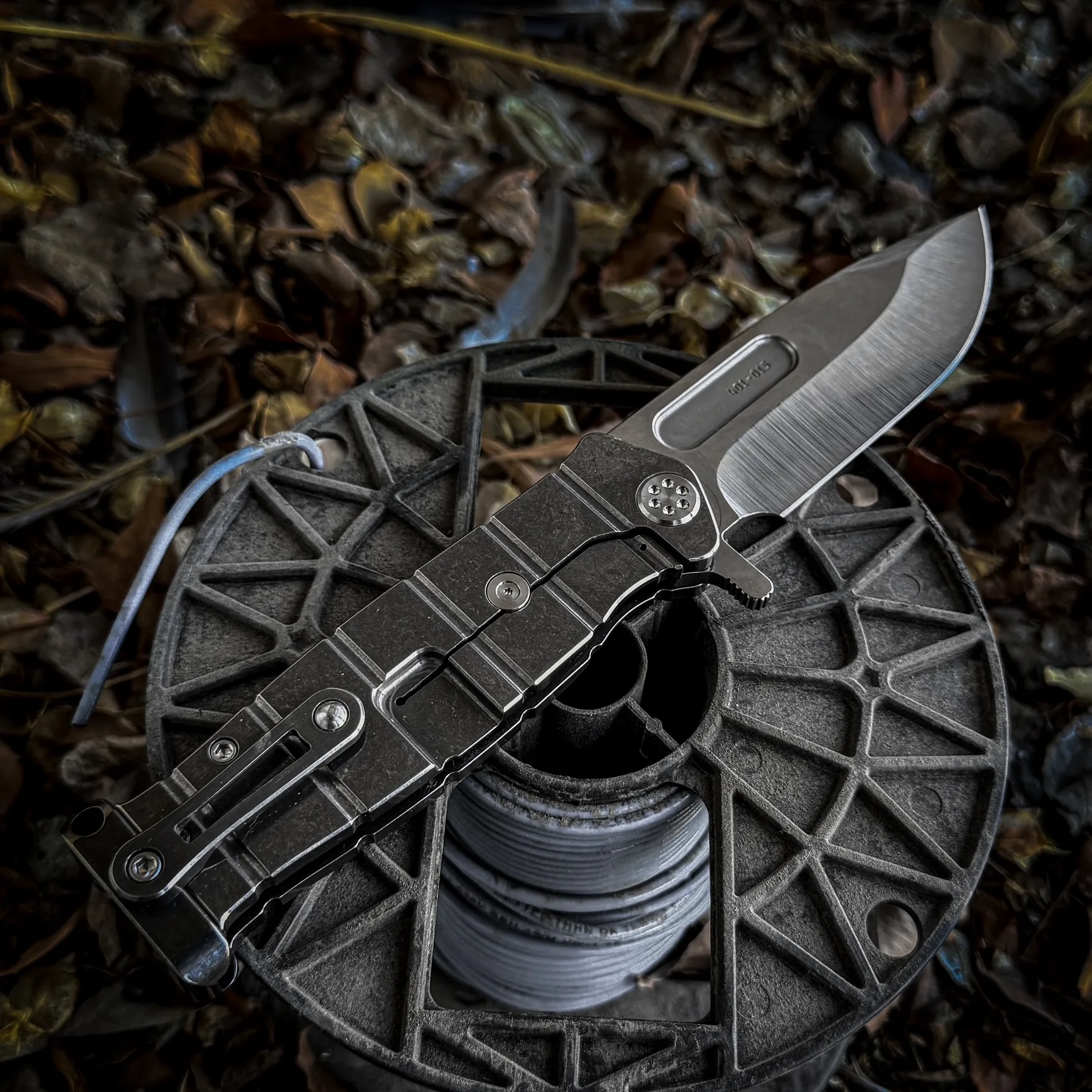 “TERMINATOR FINISH” CPM S35/45VN TUMBLED BLADE ALL TITANIUM HANDLES ALL TITANIUM HARDWARE, CLIP & POMMEL