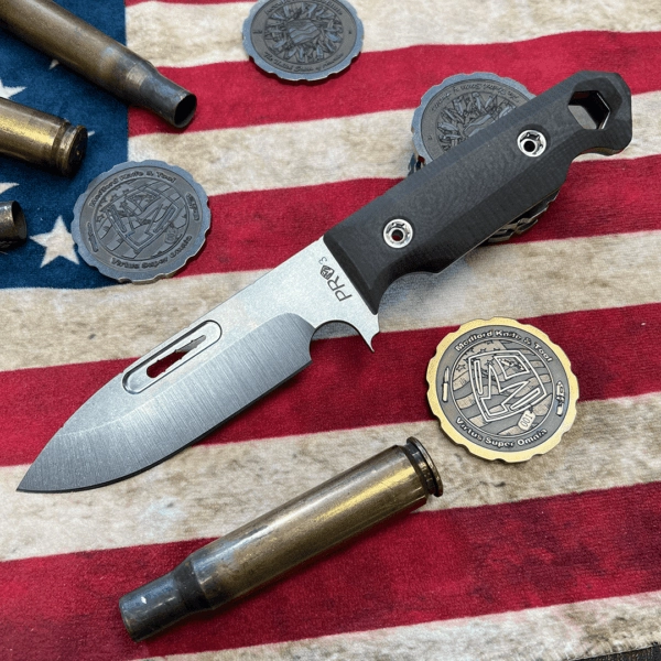 The STA design was developed for a friend of Greg’s and former Marine Corps sniper. He wanted a simple edge design to accommodate the largest number of varied users and some typical tools he often saw used in the field doing the scout sniper training. 1. ½” pommel wrench 2. Flat blade driver hilt and #. TLR (Through Looking Range Finder) good out to 400 yards/meters with minimal practice and the batteries will never wear out!