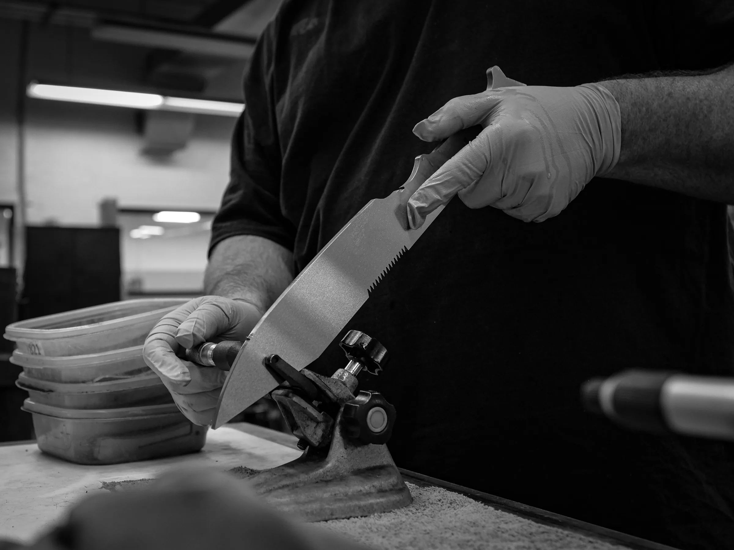 Then, the whole knife comes together in assembly with a titanium hardware and hilt. If you want to see the whole process, we’ll be releasing a video on our channel.